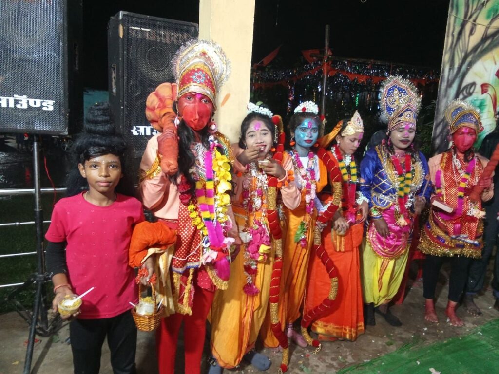कार्यक्रम में दुर्गानंदनी निषाद ने भगवान श्रीराम, उनकी बहन साधना निषाद ने लक्ष्मण, अन्नू निषाद ने रावण, खुशबू टेकाम ने हनुमान, मोनिका निषाद ने विभीषण, और यमुना नाग ने अंगद की भूमिका निभाई।